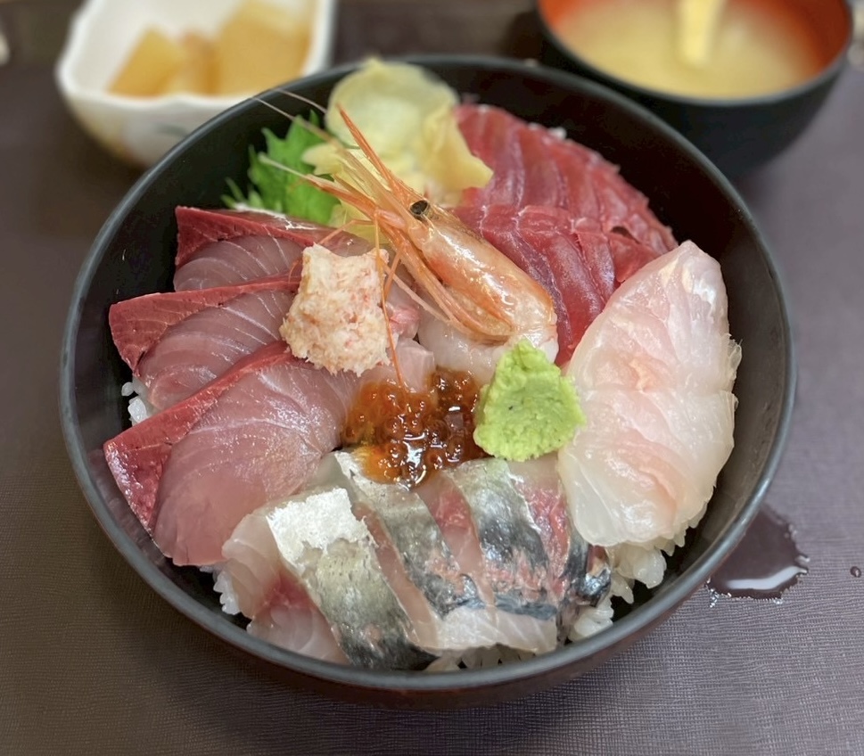 ようやく決まり、アキさんは5種海鮮丼✨私は新潟の特産品アカムツを贅沢に使用した炙りのどぐろ丼🤤で朝からモリモリ食べて元気チャージ✊ ̖́-