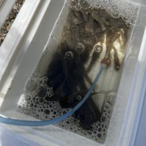 釣行時間は朝方の方が釣れるらしいのですが寝坊して午前7時〜12時くらいまで。(写真は次の日の釣りの餌用だったのでエアポンプつき。)