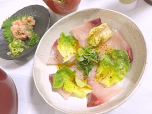 ↑こちらはカンパチのカルパッチョ♡奥のはシマアジのなめろうです🥰