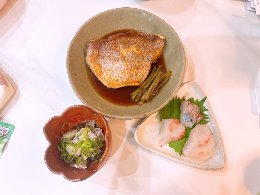 ↑こちらは真鯛の煮付けと皮の湯引き(ネギポン酢和え)