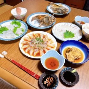 カサゴは大変だったけど、姿揚げにして、ヒラメは薄造りとカルパッチョに😋
