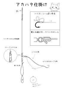 ※この日もステイト部分とハリス部分だけ大量に用意していきました。自作で使ったハリスはハヤブサのムツ針を使用。