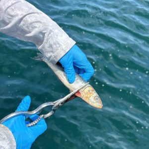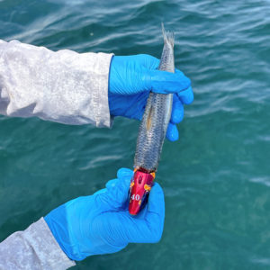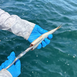 「タチウオは下から、泳ぐエサを見つけて食うはず!」