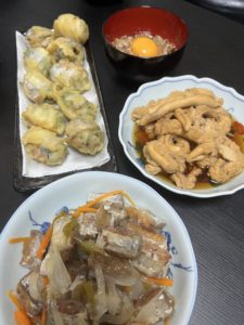 夜には卵の煮付、ユッケ風、梅じそ巻天ぷら、南蛮漬けなどなどいろんな料理を楽しみました![]()