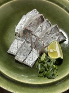良型タチウオは皮目を炙ってお刺身で頂きましたよ😋