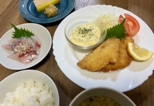 帰った翌日のディナーは、美味しく捌いて、アジフライ定食に♡