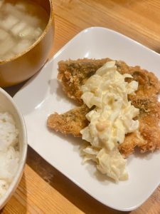 帰宅してお手製タルタルとサバフライ・アジ•サバの南蛮漬け💕