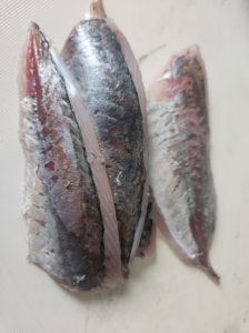 1、アジは3枚におろして皮を剥きます