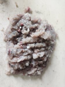 3、包丁で細かく刻みその後すり鉢でずりずりします。