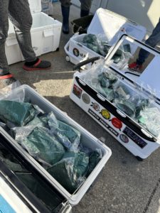 ちなみに持って行くクーラーBOXは最低でも50l以上が必要です!!