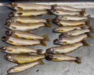 その後の堰堤や淵といったポイントでは餌優勢な印象で、師匠は大きめサイズ、私とコウキ氏はリリースサイズ多めだが、釣れない時間がないくらいしっかりと釣果があがった。