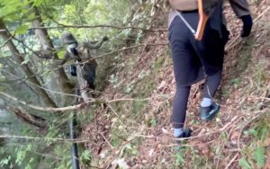 車を走らせ到着し、やってきたのは最初の難関。整備された道なんて無いもはや崖。釣り場までの道のりはまるでロッククライミング。