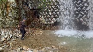 前述したようにこの谷にはいくつもの堰堤があり、その中でも、今まで師匠が何度も尺イワナに出会ってきたという一級ポイントの堰堤に到着します。