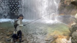数メートルに10分程時間をかけ慎重に登って降りていくと、そこに広がる素晴らしい大自然!!!!この特別感のある壮大な美景を拝めるのも渓流釣りの魅力の一つであります。