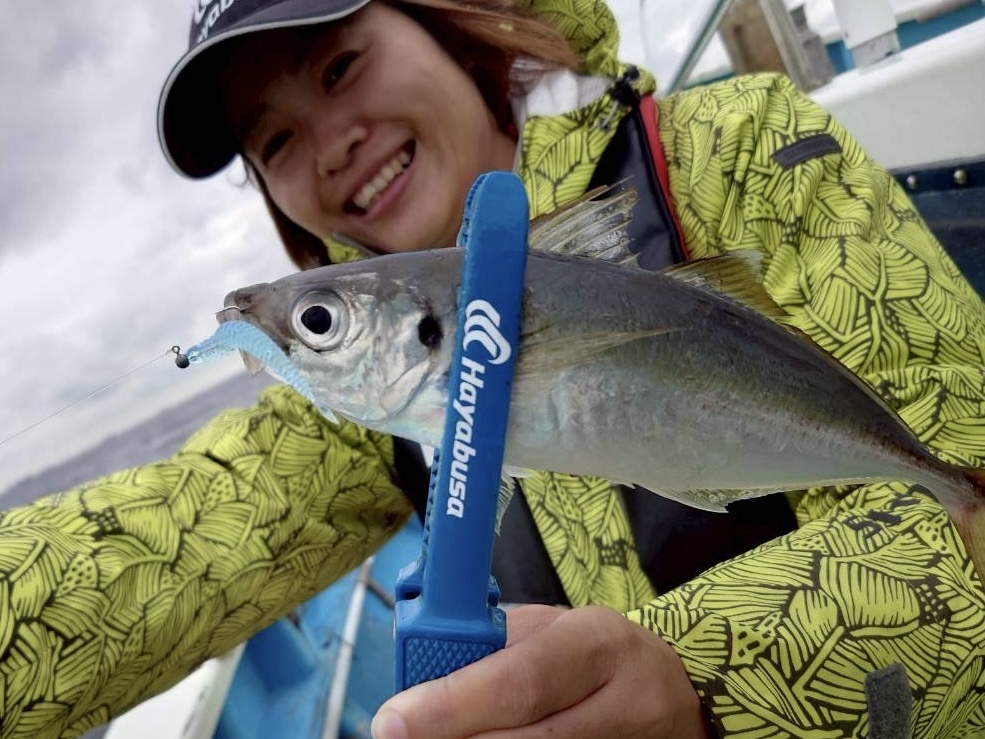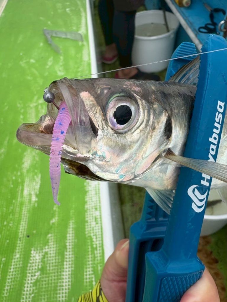 開始後暫くして今回の目的干物最適サイズのアジ君が♥️