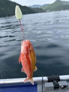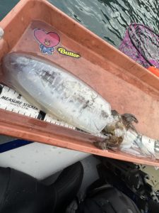 使用したのはハヤブサ貫撃誘導テンヤ【ピンクグロー】