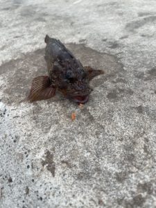 最初に釣れたのは小さなカサゴ。ポツポツと釣れてはリリースの繰り返し。