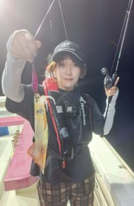 途中から船長さんも竿でアタリあるとこ探って教えてくれたりで、初もしょもしょ(*°ㅁ°)合わせたら乗ったーーー‼️‼️‼️