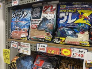 号数大きなのを色々買い漁って散財しアジカ磯釣りセンターへ向かいます。