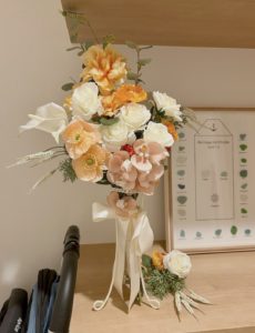 ちなみに、ブーケとブートニアは、生花だと船上の風と暑さでボロボロになってしまいそうだなと思ったので、ブリザーブドフラワー(造花のようなもの)にしました💐