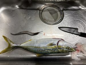 捌いていたら口からサヨリ?何か細いお魚食べていたみたいです!