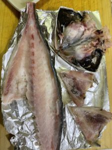 3枚卸にしたアジもグリルで焼いて余すことなく頂きます🐟