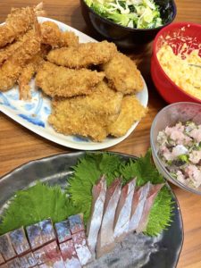 鯵のフルコースお刺身とアジフライ🐟ナメロウ
