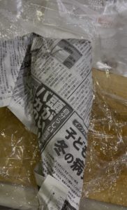 キッチンペーパーにくるみその上から新聞紙、更にラップでミチミチにし最後にジップロックにいれて冷蔵庫保管します。