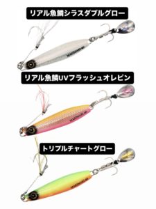 シラスグローは網目グローとセンターのストライプグローでバチバチにアピールしてくれる予感、、!オレピンは濁りとかマズメ時に良さそう!派手なトリプルチャートはローライト時の定番になりそうですね!発売が楽しみです☺️