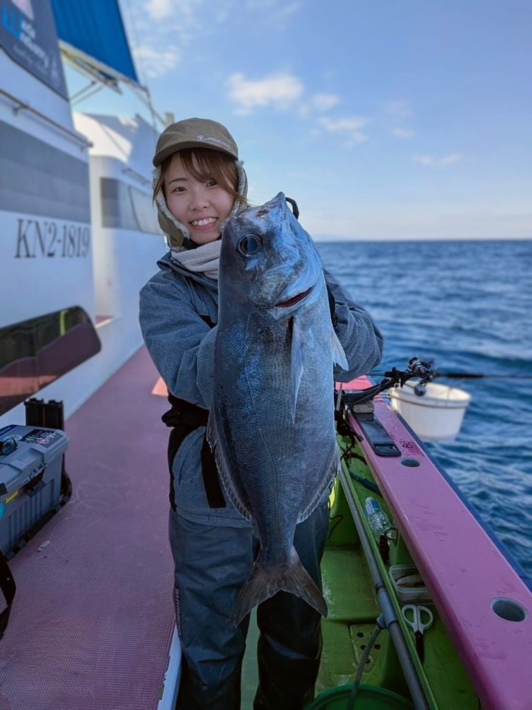 色々釣れてる中、ゴンッ!!!って重い当たりがあり、見てた船長が吹っ飛んできてドラグ調整してくれ…水深80mから手巻き…💥