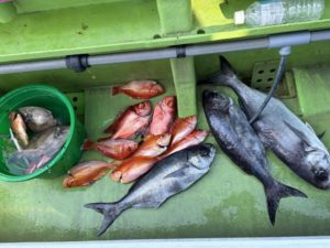 メダイ、チカメキントキ、ウマヅラハギ、オキメバル、イサキ、アカイサキとたくさん釣れました〜![]()