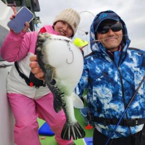 なんとこの日はトラフグがそれ以外あがらず船中1匹と激渋な1日となってしまいました💦ですが、私には生命体が乗ってくれて…