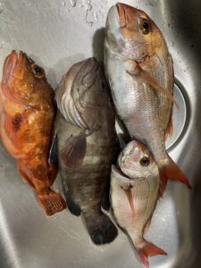 お持ち帰りの鯛と頂いたマハタ✨️✨️(*´ω`*)