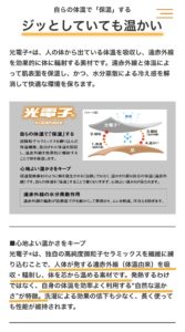 「ジッとしていても温かい」をコンセプトに、遠赤外線輻射機能による、心地よい温かさを保つ保温効果が特長的な「光電子®」。