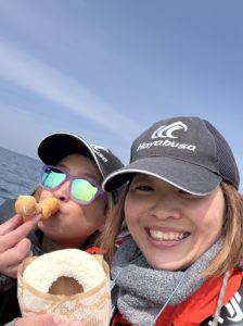 2人とも無事に釣れたしおやつタイム沖ドーナツ🍩
