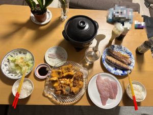 刺身、焼き魚、揚げ物と豪華にいただきました🙏