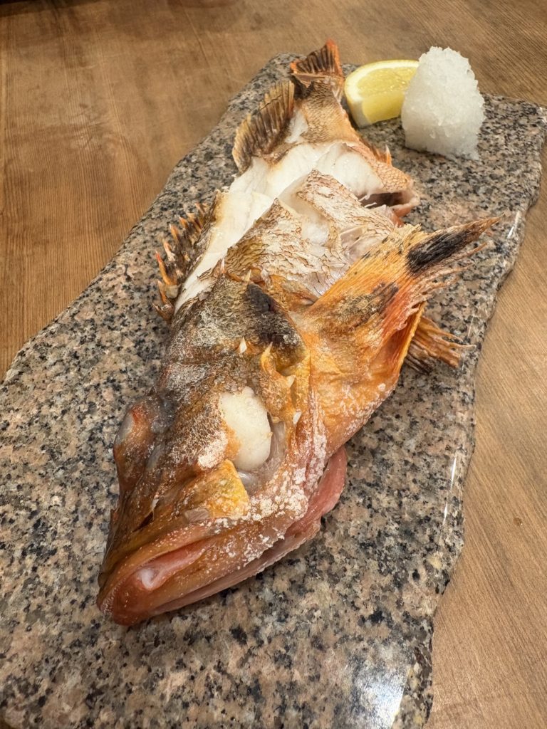 アキさんがこの日に釣り上げたウッカリカサゴ君も塩焼きで出していただいたのですが、藻塩の美味さか?絶妙な火入れの素晴らしさなのか??私の知ってる関東で釣り上げるウッカリ伝助とは違い過ぎてもはや感動レベルのおいしさでした🥹💕