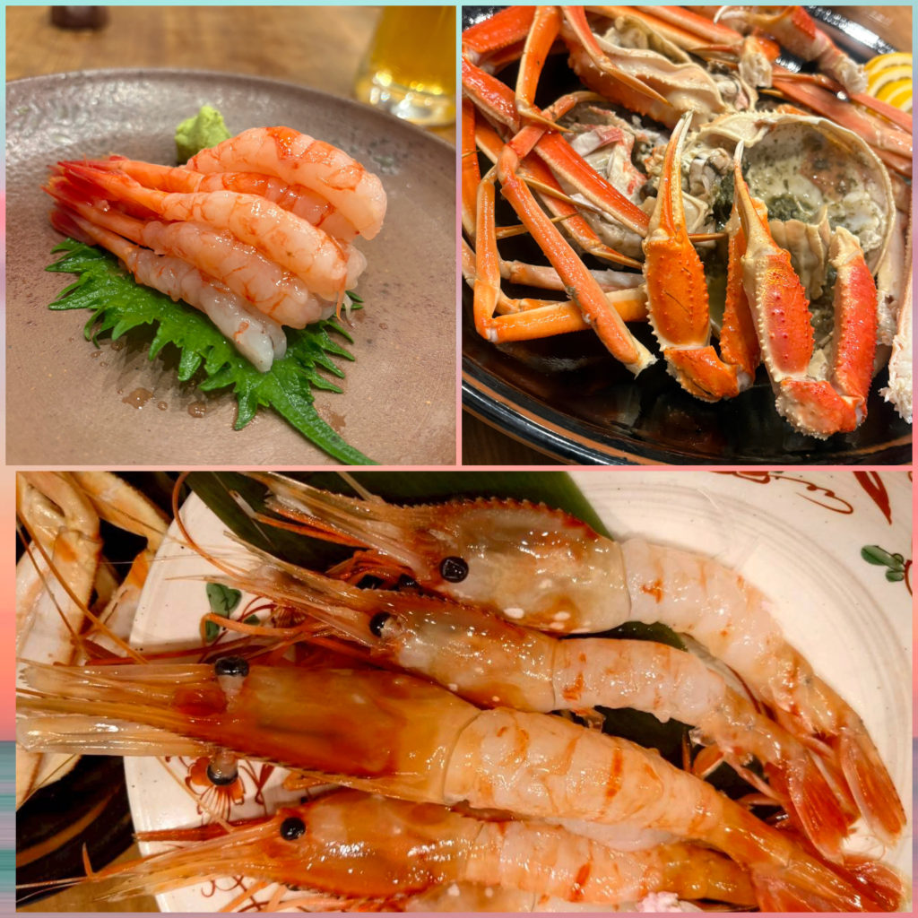 他にも甘すぎる南蛮エビ🦐と巨大なボタンエビ🦐のお刺身と、全国3位の水揚げ量を誇る新潟の超有名な冬の味覚ベニズワイガニ🦀と、エビカニコンボ👏✨