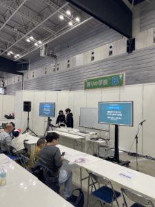 釣りの学校Bブースでは、入稲福さんと本田さんが講師となってサビキ仕掛け作り教室が行われたのでそれのお手伝いもちょこっと🤏