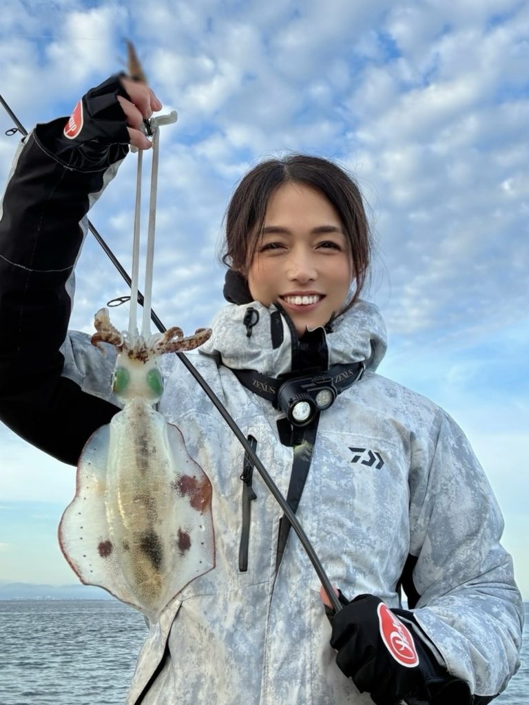 隼華11期のくみこです😊 アオリイカ釣りの思い出について振り返ります🦑🫶 この日はふと無性にイカに逢いたくなった🚗 ホームの海へ深夜到着すると 既にたくさんの釣り人で入れるところ見当たらず🤔 朝マズメまで待って 寒いし🥶眠いし🥱もう帰ろうと思ったとき 偶然、釣り友さん達と再会✨✨ 自分が来ていることを知って なんと釣り場を確保して待っててくれた🥹🙏 優しすぎでしょー☺️ お言葉に甘えて並んでシャクシャクすることに♪ 皆んなでキターーって連発するの楽しいね🥰 たくさんお喋りしながらエギング♪ あー懐かしいこの感じ🥹 自分がエギング大好きだったこと 段々と思い出してきた🫶久々に逢えたアオリイカ🦑💖 グイングインの引きも十分楽しめた😆🙌 エギングに癒されたとともに ホームの温かさを改めて実感☺️ そしてこの時に釣り友はんに撮ってもらった画像が フォトコンテストで入賞✨✨ 釣りフェスでパネル掲示されることに🤭