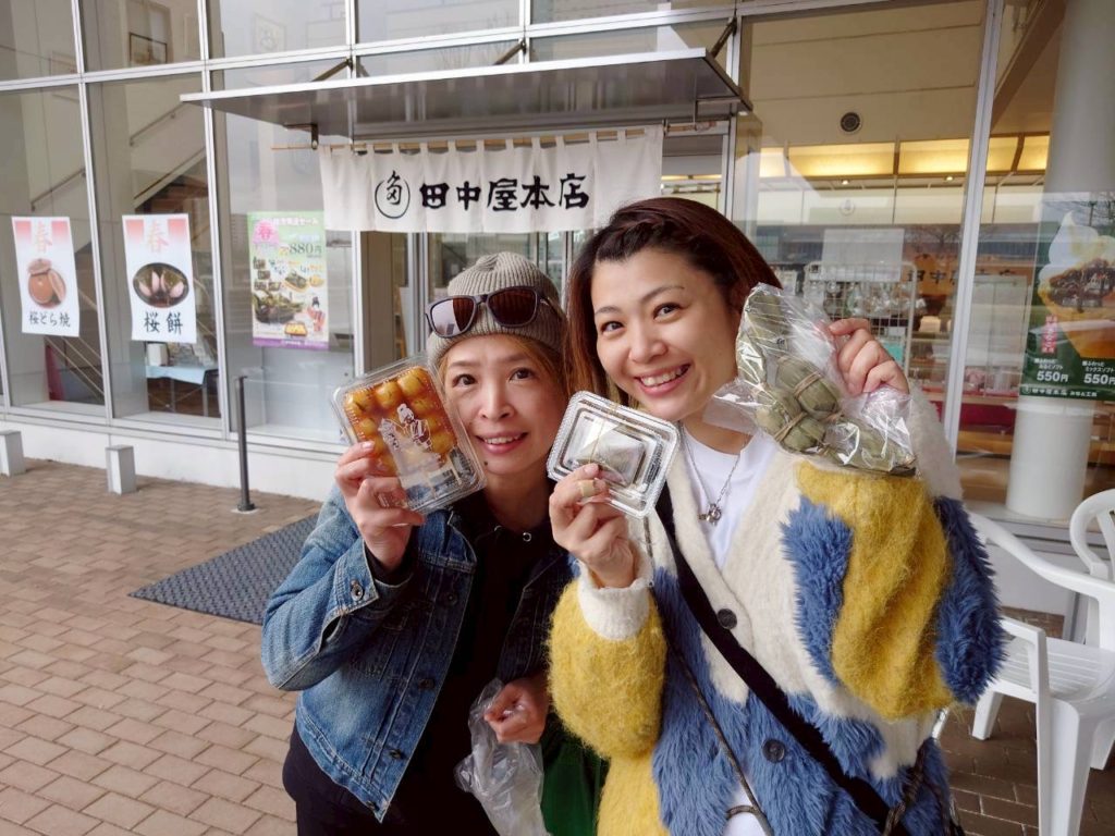 目の前で作られる出来たての笹団子を片手にここでついにお別れタイム⏱🥺